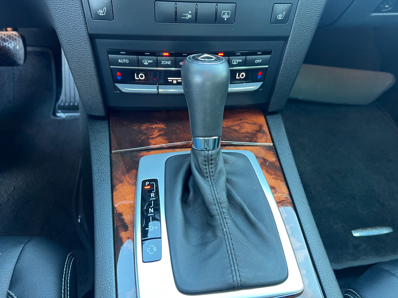 The interior exudes elegance with leather seats, genuine wood trim, and a leather steering wheel. Stay comfortable with dual-zone climate control and power adjustable seats, while the AM/FM radio and CD player provide entertainment on the go.